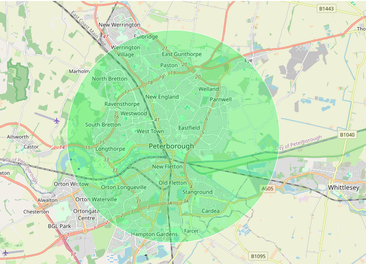 Area we cover circled in green